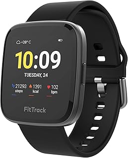 FitTrck Atria Montre Connectée - Accessoire Sport Intelligent - Surveille Sommeil et Rythme Cardiaque, Respiration Guidée, 8 Modes - Autonomie + de 10j, Etanchéité IP67-38mmx43mm