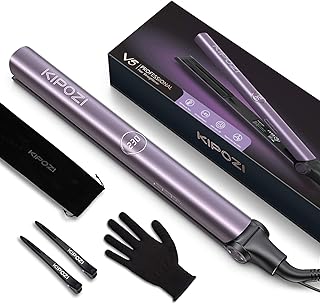 KIPOZI Lisseur de Cheveux Ionique, Lisseur Cheveux Professionnel V5 avec Plaque en Titane, Lisseur de cheveux et Fer à Friser 2 en 1 avec Double Tension et Température Réglable, Violet