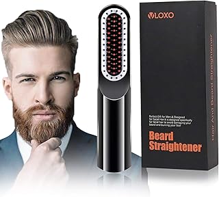 Lisseur Barbe Sans Fil, VLOXO Brosse Lissante avec Écran LCD et USB Rechargeable Peigne Lisseur Portable Ionique Anti-brûlure pour Barbe et Cheveux Température Réglable avec Chargeur Adaptateur