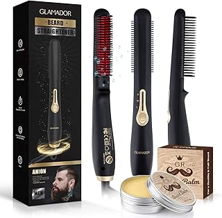 Lisseur Barbe Ionique pour Hommes-GLAMADOR 3 en 1 Brosse Lissante Rapide Peigne Electrique Multifonctionnel-Lisseur Cheveux Homme,Chauffage en Céramique,Température Réglable-Cadeau Homme Anniversaire