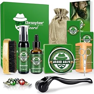 12PCS Kit de Croissance de Barbe, Kit Soins/Entretien de Barbe - Huile de Sérum Croissance de Barbe/Baume à barbe/Shampooing à barbe/Brosse Barbe/Ciseaux/Peigne barbe- Meilleur Cadeau pour Homme/Père