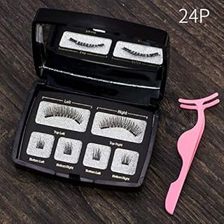Faux cils magnétiques, 3D Réutilisables sans Colle Faux Cils Naturels à la Main [Ultra-Minces] Cils magnétiques avec miroir et pincettes (8 pièces) (24P)