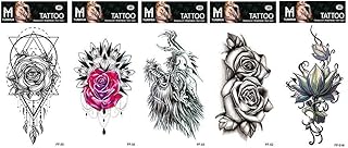 Qpout 15 pièces Tatouages Temporaires de fleur pour femmes, autocollants de tatouage de demi-bras, tatouages de papillon de crâne de fleur de rose, pour des adultes filles enfants décorations