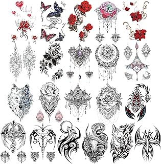 Achetez Qpout Tatouages temporaires tribaux rétro Pour hommes femmes adultes, 12 feuilles faux corps Art étanche demi-bras visage poitrine épaule tatouage autocollants aigles crâne hibou fleur loup papillon: Amazon.fr Livraison & retours gratuits possibles (voir conditions) Qpout tatouages temporaires dos complet pour hommes femmes 3 feuilles, 18.8x13.3 pouces grande photo tatouages noirs, totem tribal tatouages temporaires imperméables décoration réaliste de tatouages Marque : Qpout 44 évaluations 1299€ (9,99€ /100 g) & Retours GRATUITS Tous les prix incluent la TVA.