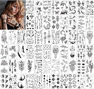 Qpout tatouages temporaires pour adultes femmes hommes enfants (60 feuilles), tatouages noirs imperméables visage tribal manche bras cou poignet tatouages totem fleur papillon requin plume