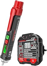 KKmoon Testeur de Tension AC Sans Contact Portable Testeur de Prise électrique RCD Avancé Testeur de Prise + Prise de Courant Stylo en Forme de V Det Détecteur d'alerte avec Alarme Sonore et Lumineuse