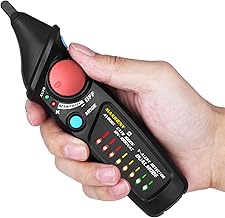 Fasloyu Testeur de tension sans contact avec sensibilité réglable, écran LCD, lampe de poche LED, double gamme 12-1000 V Testeur électrique sans contact avec détecteur de tension AC, noir